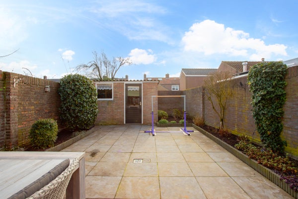 De woning beschikt over een zonnige achtertuin op het zuiden en een voortuin met parkeergelegenheid. De achtertuin is verzorgd aangelegd met fraaie bestrating en diverse vaste planten, beschikt over een vrije achterom en een fietsenberging met elektra.
