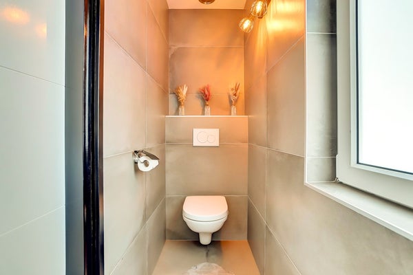Aan de voorzijde van de woning zit nog een separaat toilet voorzien van hagncloset.
