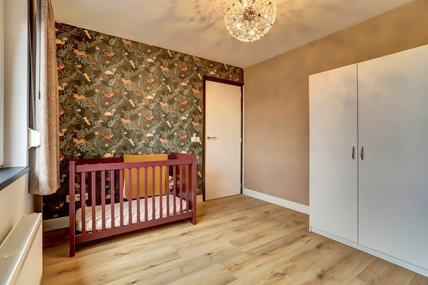 Via het vaste trappenhuis bereiken we de eerste verdieping. Deze verdieping is mede dankzij de opbouw heerlijk ruim en afgewerkt met een warme houten laminaatvloer, strakke wanden en plafonds met inbouwspots. De overloop geeft toegang tot het separate toilet, drie slaapkamers en de badkamer.