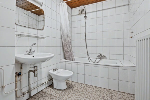 De badkamer is gelegen op de begane grond en is praktisch ingericht. Het biedt volop mogelijkheden om deze te moderniseren tot een frisse en comfortabele ruimte.