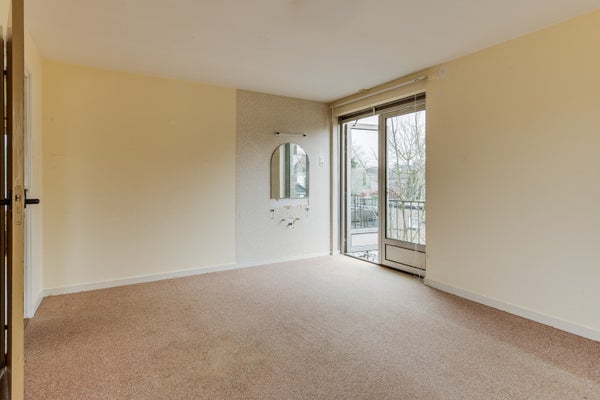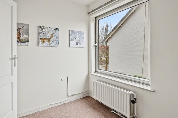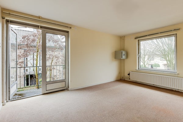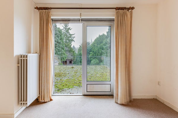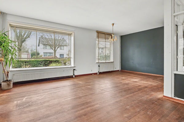 De woonkamer is heerlijk ruim en geniet van veel lichtinval. Dankzij de royale afmetingen is er meer dan genoeg plek voor een comfortabele zithoek én een grote eettafel. Dit is een fijne leefruimte waar je na een modernisering een warme en eigentijdse woonplek van kunt maken.