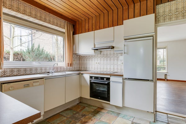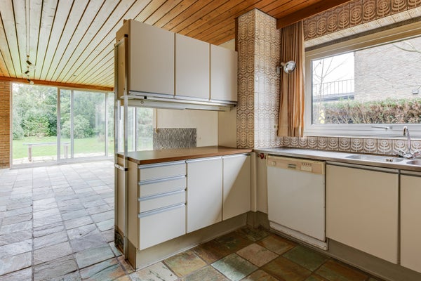 Aangrenzend ligt de keuken met eetkamer, een prettige ruimte waar koken en samenkomen centraal kunnen staan. De indeling biedt volop kansen voor een moderne leefkeuken, geheel naar eigen smaak en stijl. Vanuit de eetkamer is er toegang tot buiten.