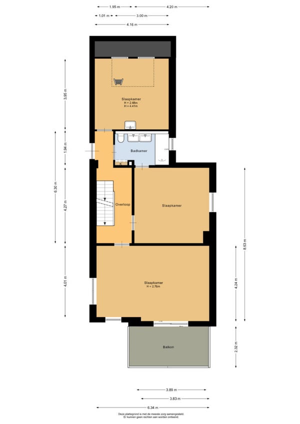 - De tussenwoning heeft een woonoppervlakte van 231 m² en beschikt over 6 kamers, waarvan 5 slaapkamers;