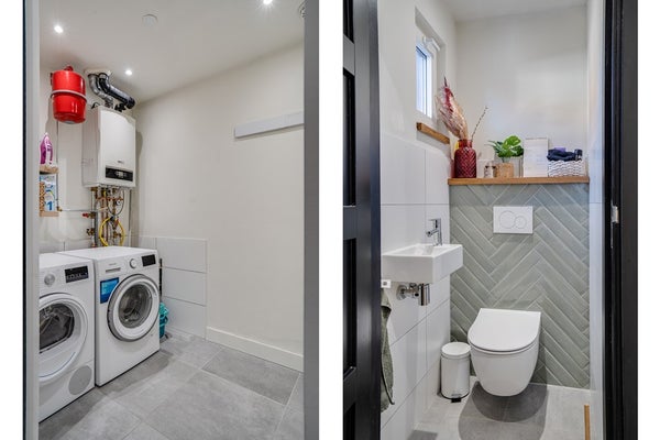 De bijkeuken is bijzonder praktisch en biedt ruimte voor witgoed en extra opslag, een waardevolle toevoeging aan het wooncomfort.