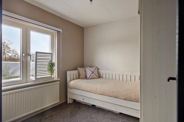 Op de eerste verdieping vindt u vier slaapkamers van goed formaat, elk voorzien van daglicht en een nette afwerking. De kamers zijn goed in te delen en bieden ruimte voor een bed, kasten en eventueel een werkplek, afhankelijk van uw woonwensen. Daarnaast zijn er de nodige vaste kasten en een vlizotrap naar de bergzolder. Dit maakt deze verdieping praktisch in gebruik. Op de overloop is tevens airconditioning aanwezig.