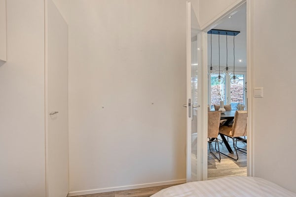 De bungalow beschikt over drie slaapkamers, elk met een eigen karakter en geschikt voor verschillende doeleinden. De hoofdslaapkamer is rustig gelegen en biedt voldoende ruimte voor een tweepersoonsbed en er is een ruime inbouwkast aanwezig. De twee overige slaapkamers zijn ideaal als logeer- of kinderkamer en beiden voorzien van handige bovenkasten. De badkamer is modern uitgevoerd en voorzien van een douche, wastafelmeubel en aansluitingen voor de wasmachine. Daarnaast is er een separaat toilet, wat het comfort compleet maakt.