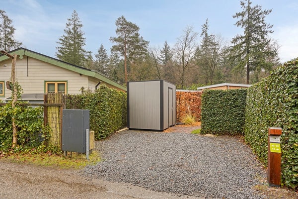 Aan de rand van het bosrijke Vakantiepark Thijmse Berg ligt deze verzorgde bungalow, een plek waar rust en comfort elkaar versterken. Hier verblijft u op een royaal perceel, omringd door volwassen groen, met een woning die overzichtelijk, praktisch en sfeervol is ingedeeld. Met een woonoppervlakte van 66 m², drie slaapkamers en een lichte leefruimte is dit een fijne uitvalsbasis voor wie graag buiten leeft, maar binnen ook prettig wil verblijven. De woning is gelijkvloers, wat het gebruik comfortabel maakt, en sluit met openslaande deuren mooi aan op de tuin en de overdekte veranda. Binnen is het interieur verzorgd en neutraal afgewerkt, waardoor u zich hier direct kunt voorstellen hoe u deze plek naar eigen smaak verder invult. Buiten biedt het perceel meerdere zitplekken, een vrijstaande berging en veel privacy. Een plek waar u moeiteloos tot rust komt, met de natuur van de Utrechtse Heuvelrug letterlijk om u heen.