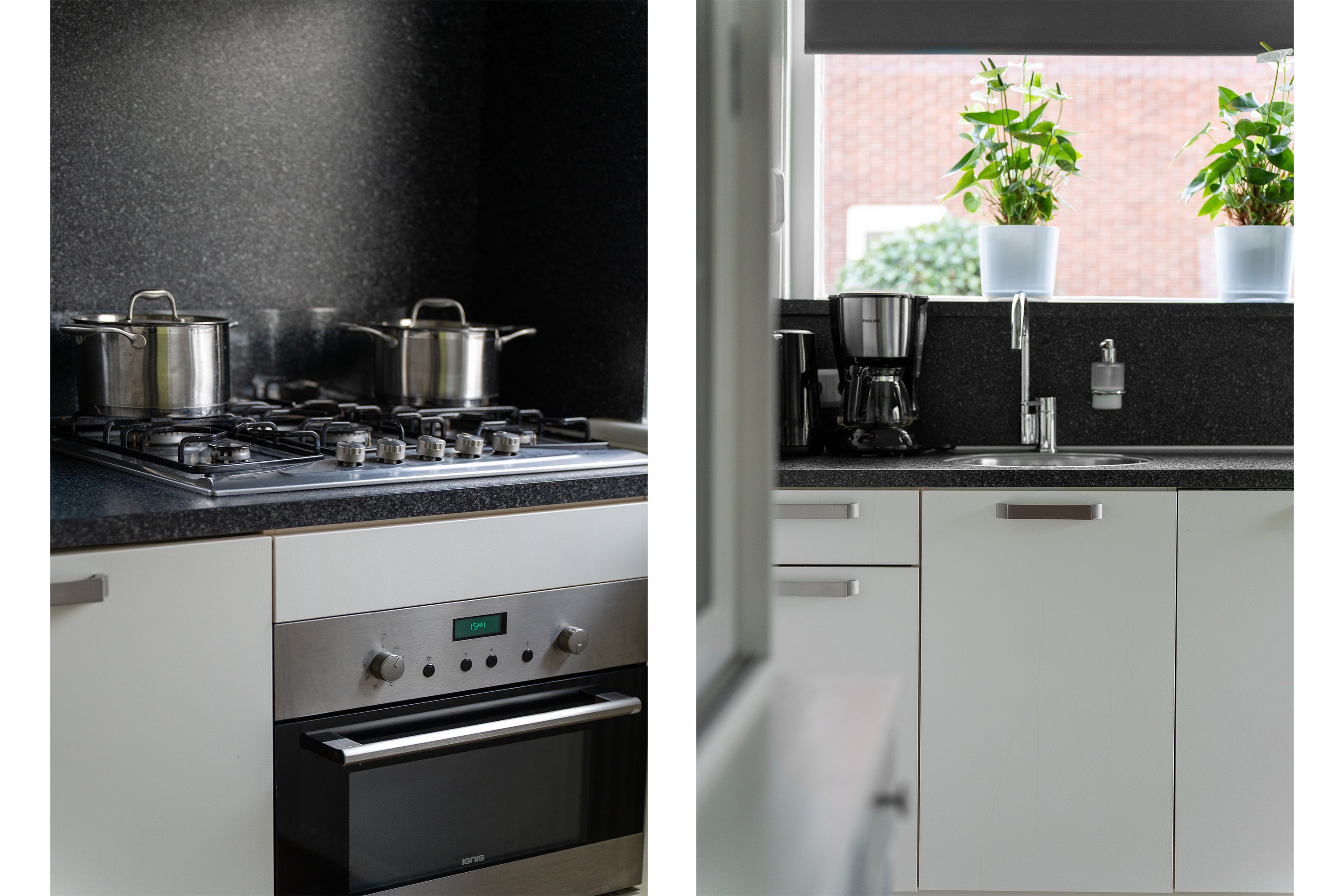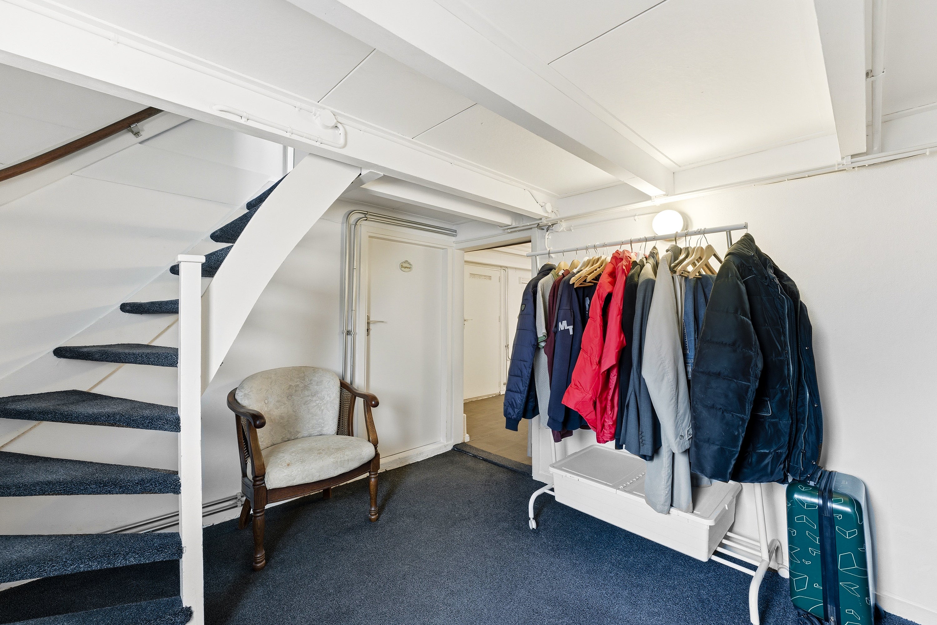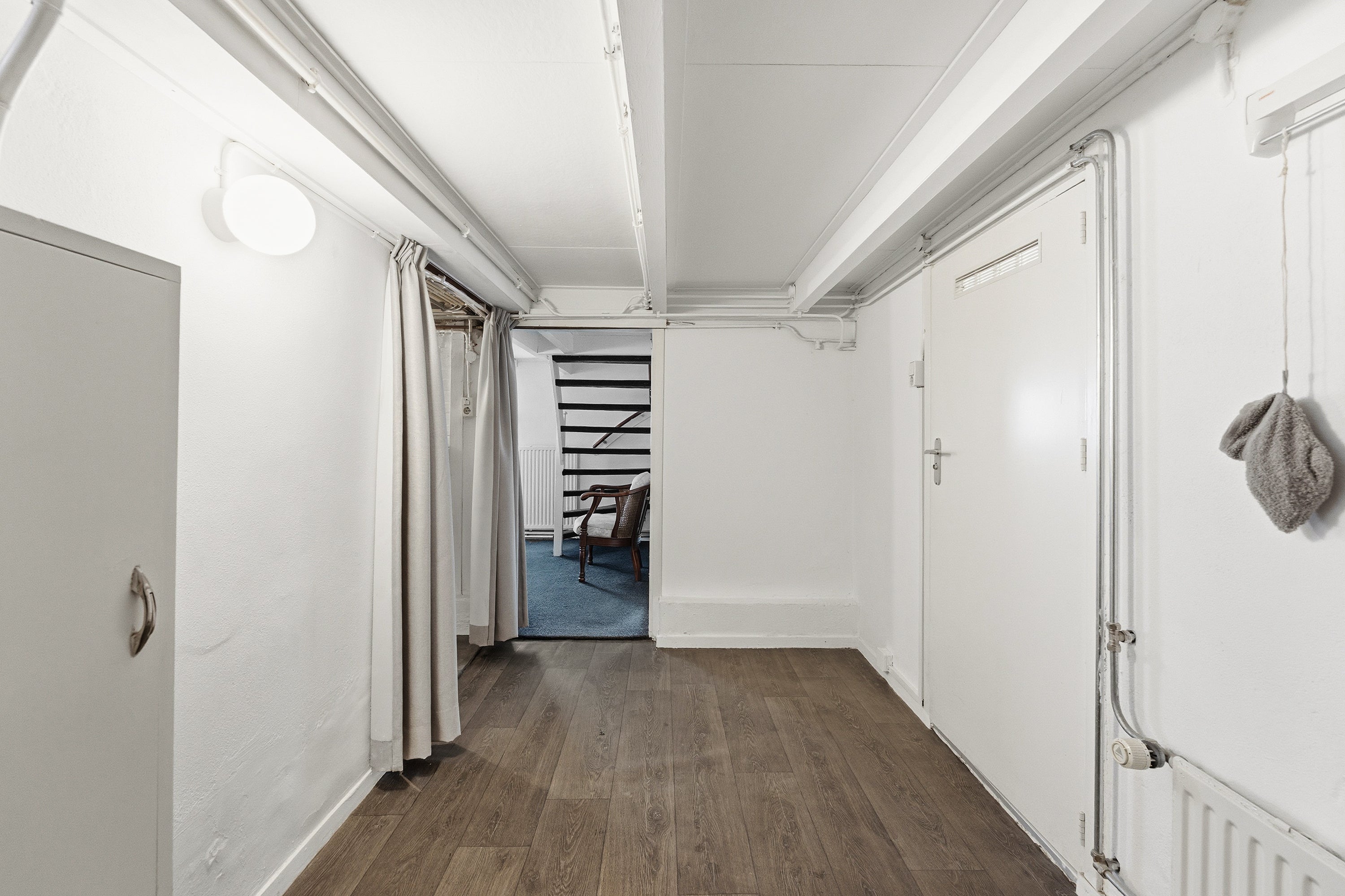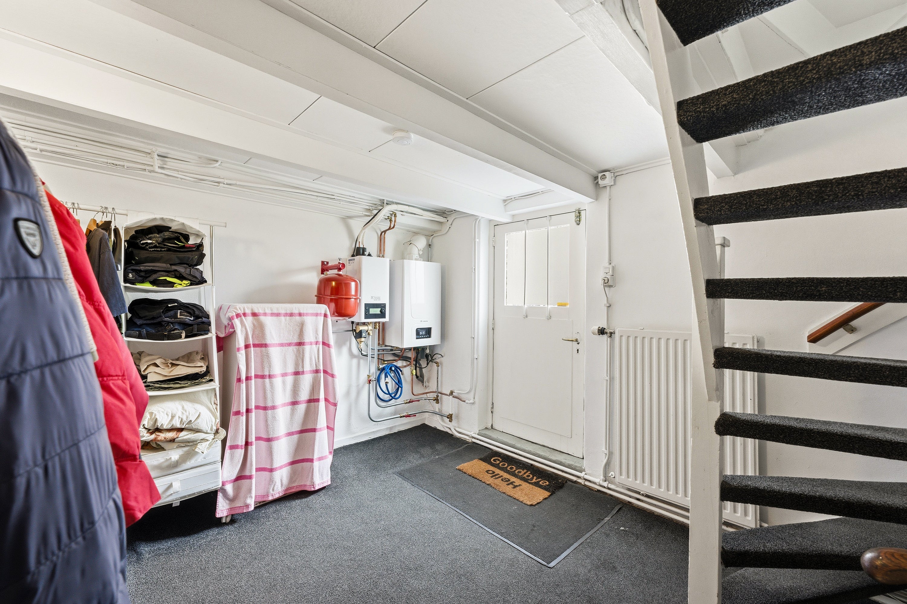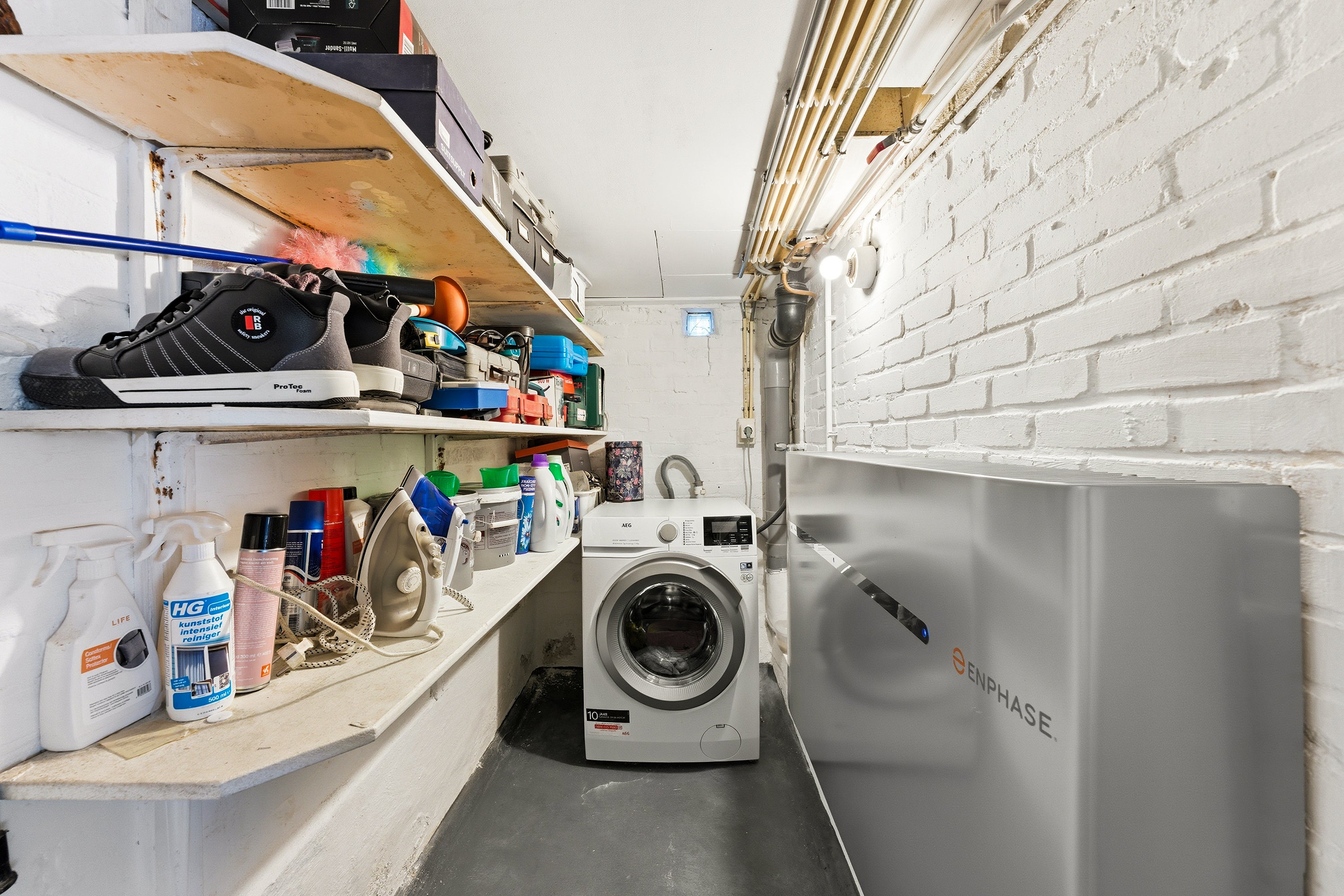 De indeling biedt op de begane grond een ontvangsthal met toegang tot de toiletruimte en een ruime keuken. De woonkamer heeft grote ramen die voor veel lichtinval zorgen en is uitgerust met een ethanol haard en airco. Op de eerste verdieping bevinden zich twee slaapkamers met dakkapel. Het souterrain, met een hoogte van 1,80m, biedt toegang tot een badkamer, wasruimte en de achtertuin.