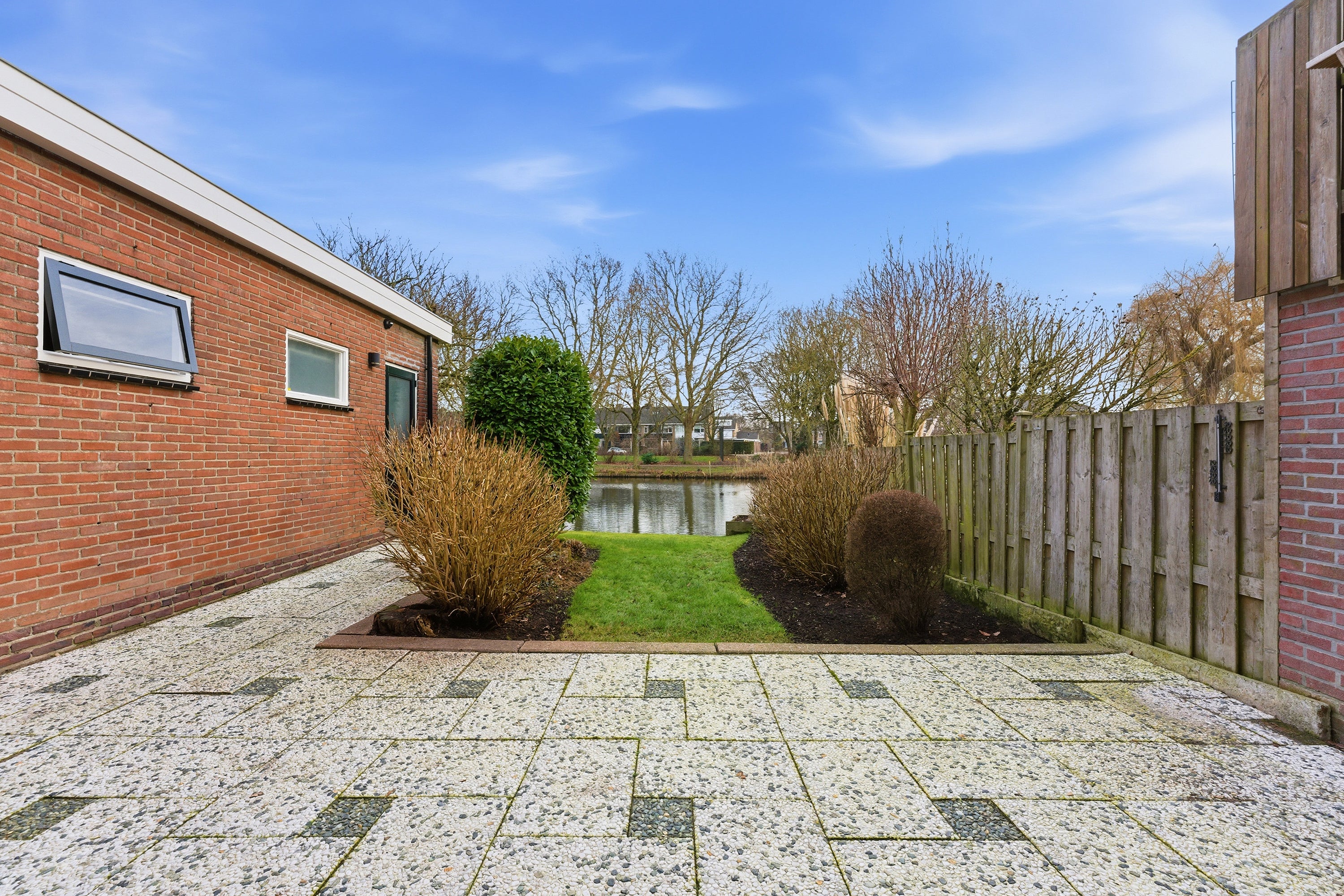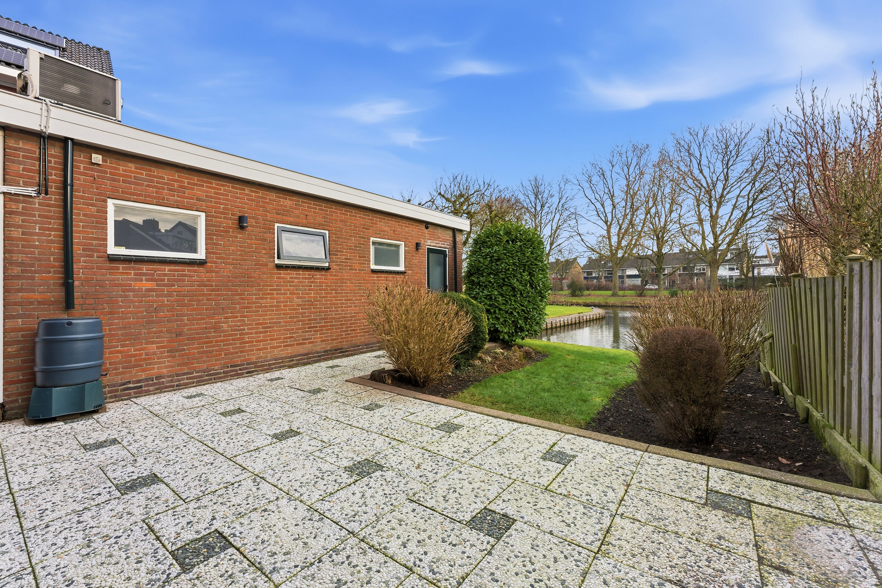 De verzorgde tuin aan het water is een van de unieke kenmerken van deze woning.