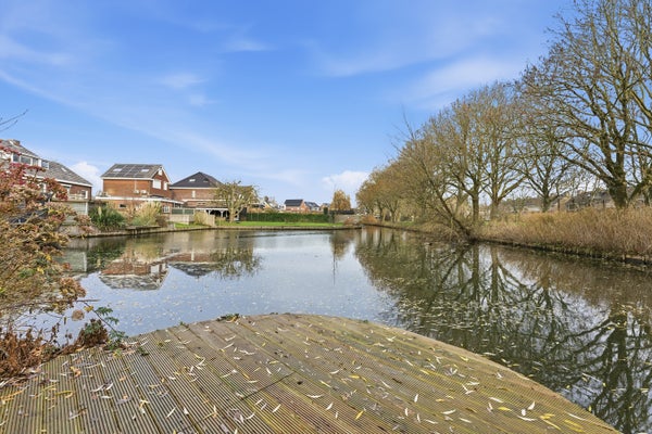 De begane grond heeft een hal die toegang biedt tot de woonkamer, een slaapkamer die nu als eetkamer dient, toiletruimte en de trap naar de eerste verdieping en het souterrain. De open keuken is goed uitgerust en de woonkamer heeft een schuifpui naar het terras. De badkamer beschikt over ligbad, douche en toilet. Op de eerste verdieping zijn drie slaapkamers, waarvan twee met wastafel en één met doucheruimte. Het souterrain heeft nog twee slaapkamers, een kastenkamer en garage/wasruimte met toegang tot de achtertuin. De tuin aan de achterzijde ligt op het oosten met uitzicht op het water.