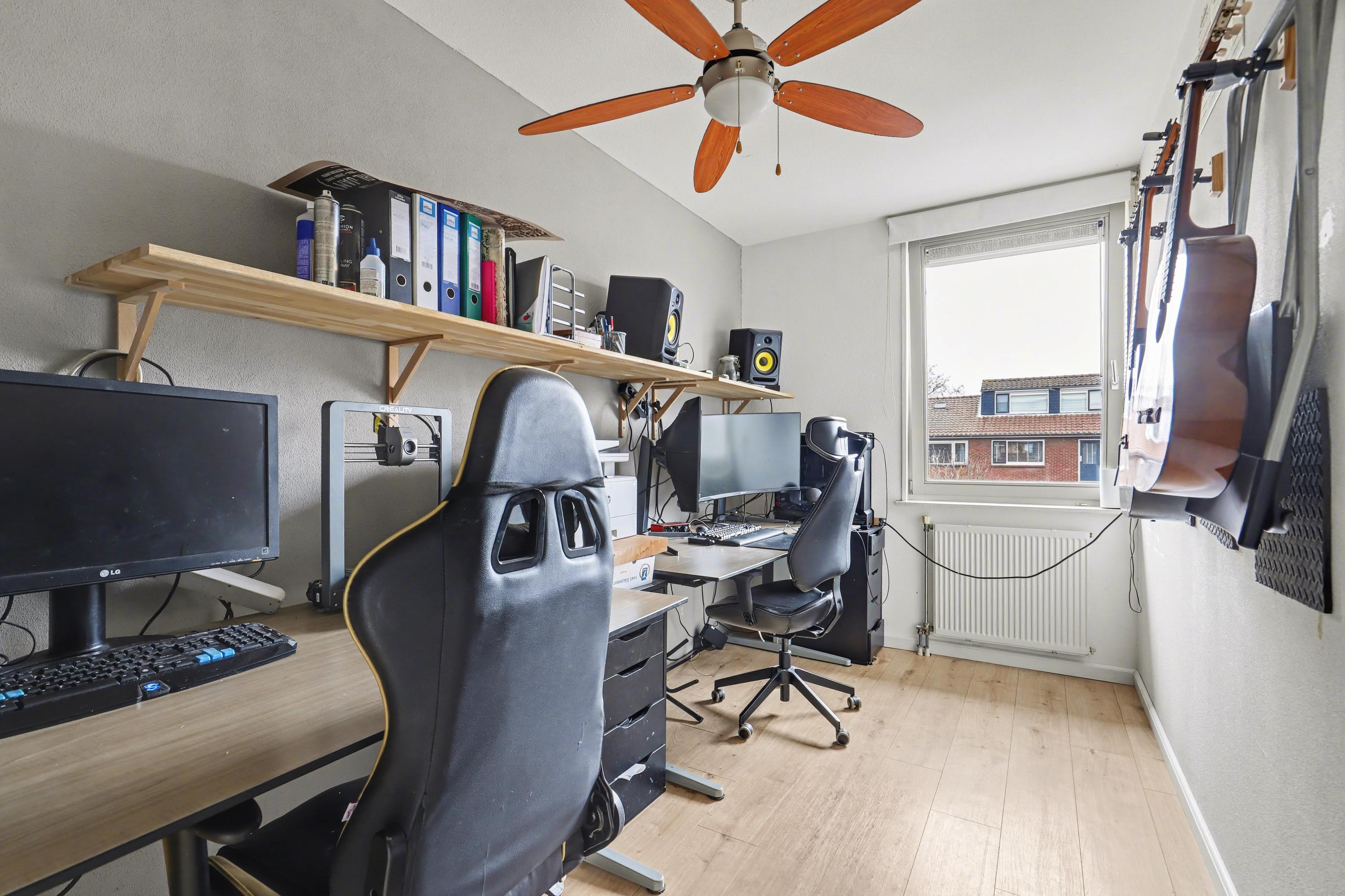 In het groene hofje van Slikkerveer, op het voormalige terrein van de Ambachtsschool, staat deze goed onderhouden 6-kamer tussenwoning uit 2004. De woning is volledig geïsoleerd en voorzien van HR++ glas, wat bijdraagt aan een comfortabel woonklimaat en lage energiekosten. Duurzaamheid is hier ook belangrijk: met een nieuwe CV-ketel uit 2023 en 15 zonnepanelen uit 2021 heeft de woning energielabel A. De stijlvolle afwerking omvat eikenhouten vloerdelen en een moderne keuken, compleet met inbouwapparatuur van 2021. Met vijf slaapkamers is er voldoende ruimte voor een gezin of thuiswerkplek. De aangelegde tuin met overkapping en houten berging biedt een fijne plek voor ontspanning. De woning ligt nabij voorzieningen zoals scholen, winkelcentrum Dillenburgplein en openbaar vervoer. Kortom, een gezinswoning met ruimte en comfort op een fijne locatie.