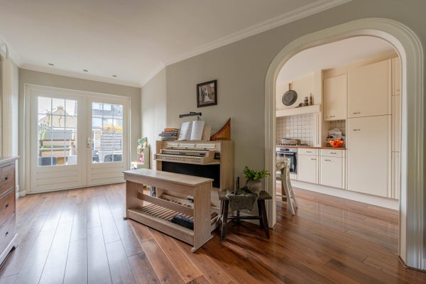 Deze ruime eengezinswoning in het centrum van Ridderkerk biedt maar liefst zeven slaapkamers, een royale voor- en achtertuin en een dakterras, ideaal voor een gezin. Bij binnenkomst verwelkomt een grote voortuin de bewoners. Op de begane grond vind je een doorzonwoonkamer met voldoende ruimte voor een zithoek en een eetgedeelte, en openslaande deuren die toegang geven tot de tuin. De keuken is uitgerust met inbouwapparatuur en biedt ruimte voor een eettafel. De eerste en tweede verdieping herbergen in totaal zeven slaapkamers en een badkamer met een tweede toilet. De zolder biedt een wasmachine-aansluiting en extra bergruimte. De centrale ligging maakt het makkelijk om winkels, horeca en openbaar vervoer te bereiken. Dit is een aantrekkelijke woning met veel mogelijkheden voor comfortabel leven.