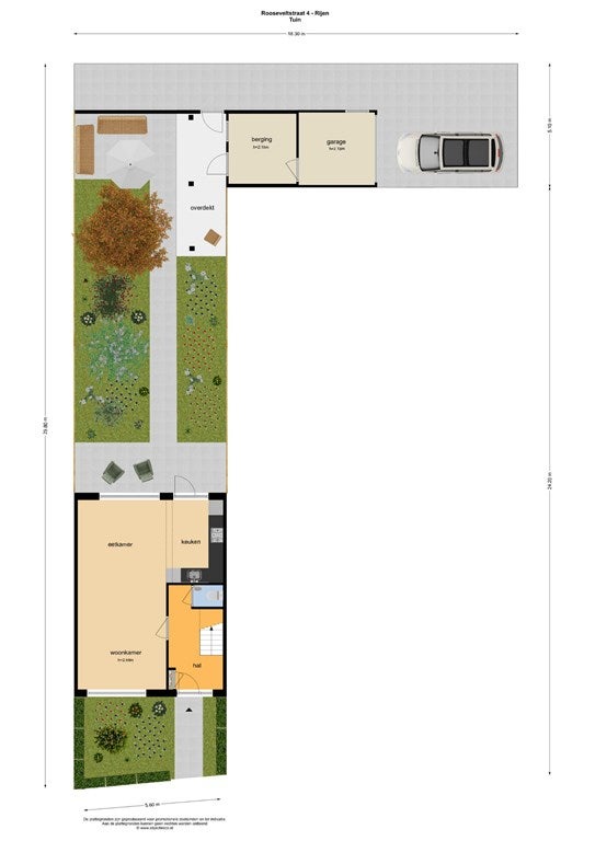 - Aanwezig (120 m², gelegen op het noordwesten)