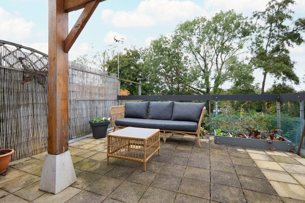 - Aanwezig (120 m², gelegen op het noordwesten)
