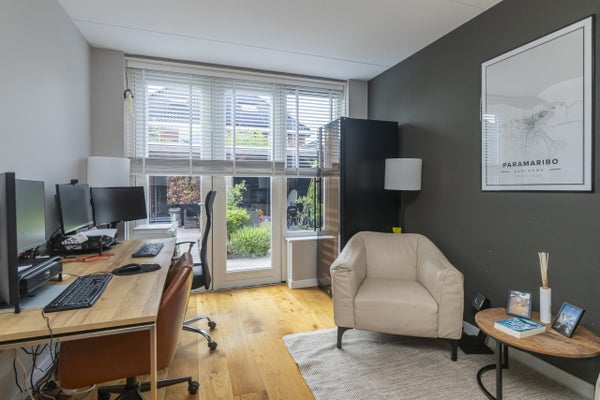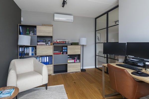 In het groene Villapark Eikelenburgh vindt u deze ruime twee-onder-een-kapwoning uit 2019. Energiebesparend en functioneel ingedeeld, biedt het huis volop leefruimte met vijf slaapkamers, een werkkamer op de begane grond en een serre aan de zonnige tuin. U parkeert op eigen terrein in een rustige wijk nabij voorzieningen. De woning beschikt over een open Siematic-keuken met hoogwaardige apparatuur en een lichte woonkamer met gashaard en vloerverwarming. Op de eerste verdieping zijn drie slaapkamers en een nette badkamer. De zolder heeft nog eens twee slaapkamers en een praktische wasruimte. De tuin is op het zuidwesten en biedt meerdere zitplekken, waaronder een overdekte veranda. Met 176 m² woonoppervlak en een perceel van 276 m² is dit een ideale gezinswoning.