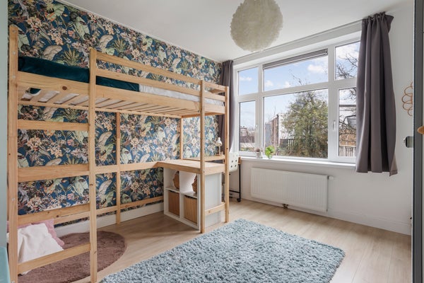 De woning heeft een verzorgde voortuin en een ruime woon-/eetkamer met openslaande deuren naar de tuin. De open keuken is compleet uitgerust. Op de eerste verdieping zijn vier slaapkamers en een badkamer, terwijl de bovenste etage nog twee slaapkamers en een tweede badkamer herbergt. Dit huis, gebouwd in 1925, is ideaal voor een groot gezin.