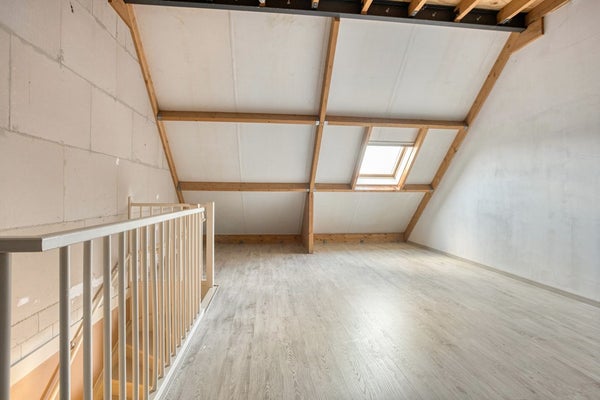 Via een vaste trap bereik je de royale tweede verdieping voorzien van laminaatvloer. Deze biedt veel mogelijkheden voor een extra slaap- of werkkamer en is voorzien van een Velux dakraam en laminaatvloer. Hier bevindt zich tevens de was-/c.v.-ruimte, waardoor deze verdieping volledig functioneel is en naar eigen wens ingericht kan worden.