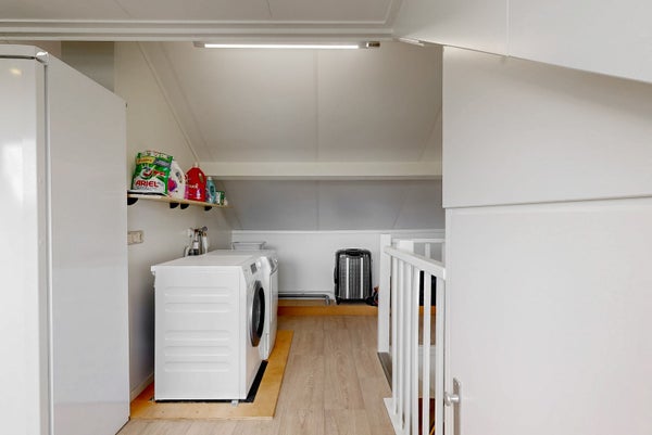 Heb je een gezin met kinderen? Met 4 slaapkamers is er voldoende ruimte voor iedereen. Op de eerste verdieping liggen 3 slaapkamers. De masterbedroom is voorzien van airco. De vierde slaapkamer bereik je via de vaste trap naar de zolder. De wasmachine en droger hebben hier ook hun eigen plekje.