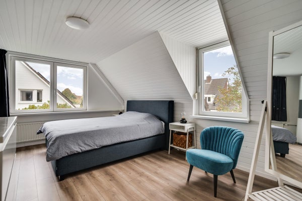 - De vrijstaande woning heeft een woonoppervlakte van 166 m² en beschikt over 8 kamers, waarvan 4 slaapkamers;