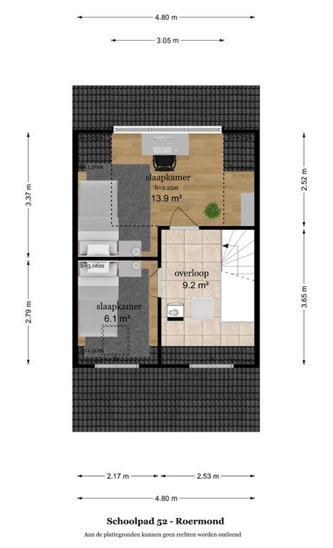 - Aanwezig (50 m², gelegen op het noordoosten)