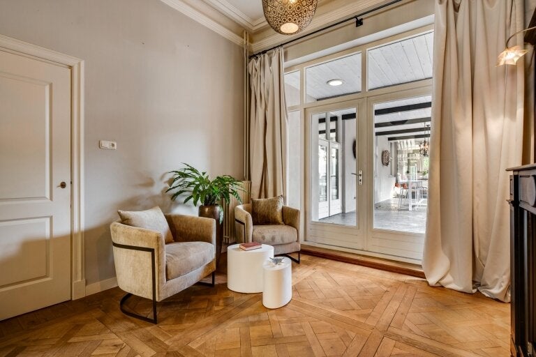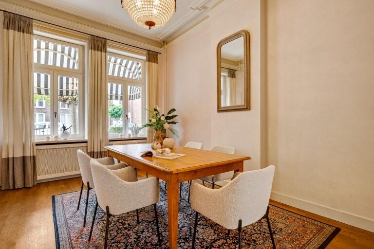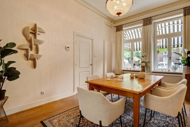 Heinsbergerweg 31 is een statig herenhuis in de geliefde wijk Kapel in ’t Zand. Dit karaktervolle huis biedt enorm veel ruimte met negen royale slaapkamers en vier badkamers, perfect voor een groot gezin. Bij binnenkomst in de imposante woonkamer van bijna tien meter lang, met een Versailles-parketvloer en hoge raampartijen, ervaart u een elegante ambiance die leidt naar het overkapte terras en de stadstuin – een privé-oase. De kookliefhebbers zullen zich thuisvoelen in de indrukwekkende woonkeuken van circa 25 m², vol luxe apparatuur. De begane grond bevat bovendien een woonstudio met eigen entree, ideaal voor gasten of als Bed & Breakfast. De eerste en tweede verdieping hebben ruime slaapkamers met luxe badkamers. De buitenruimte biedt een terras en speeltuin, perfect voor ontspanning. Een unieke kans om te wonen met karakter, klasse en comfort, dicht bij het levendige centrum van Roermond.