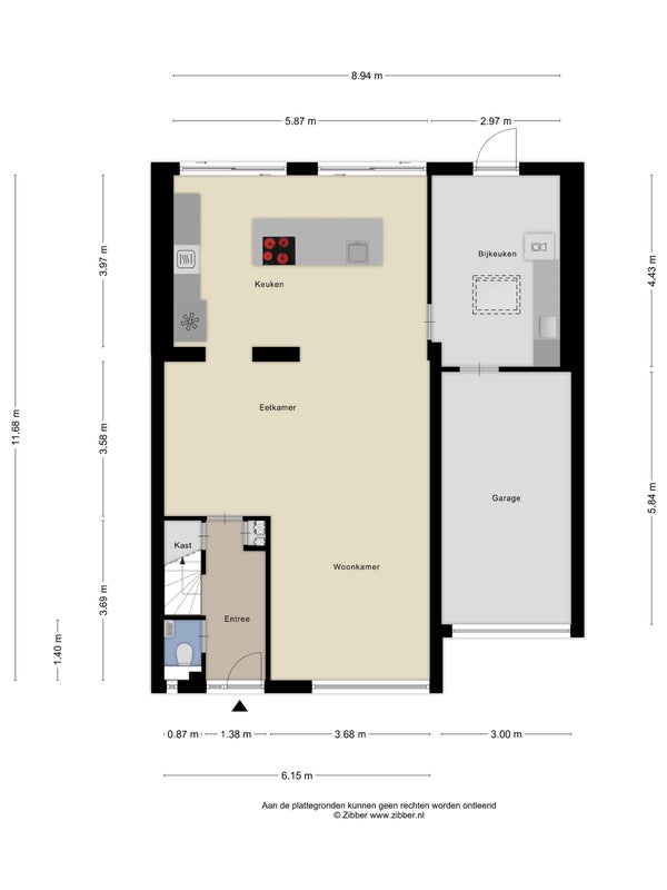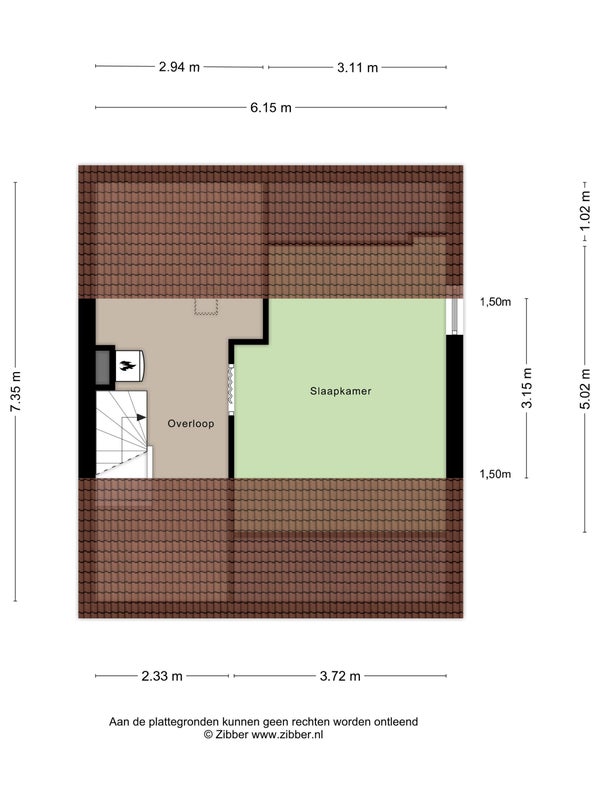 - Aanwezig (50 m², gelegen op het zuidoosten)