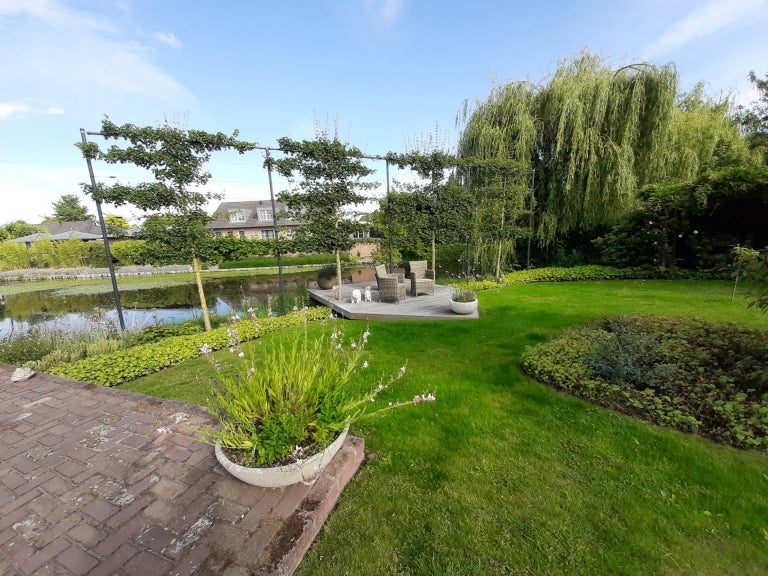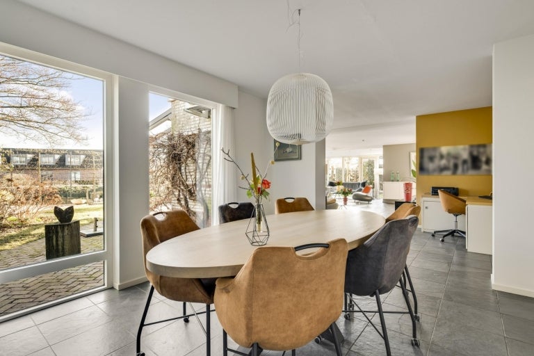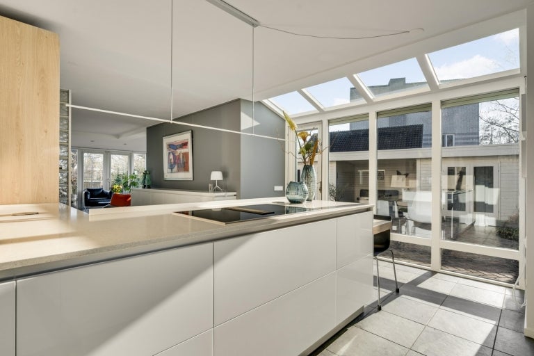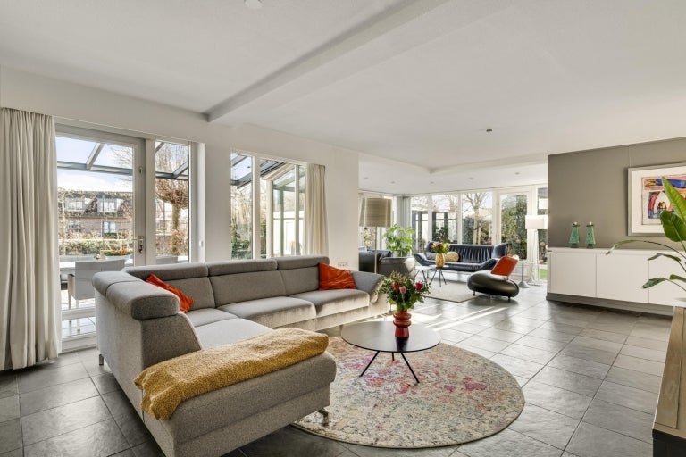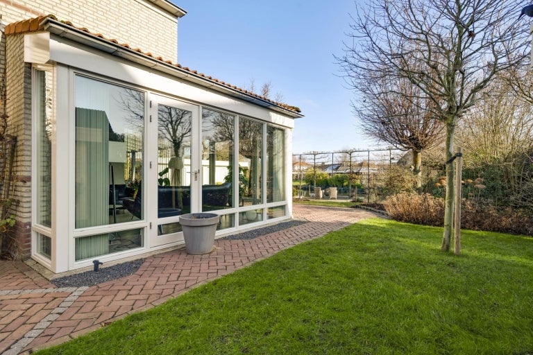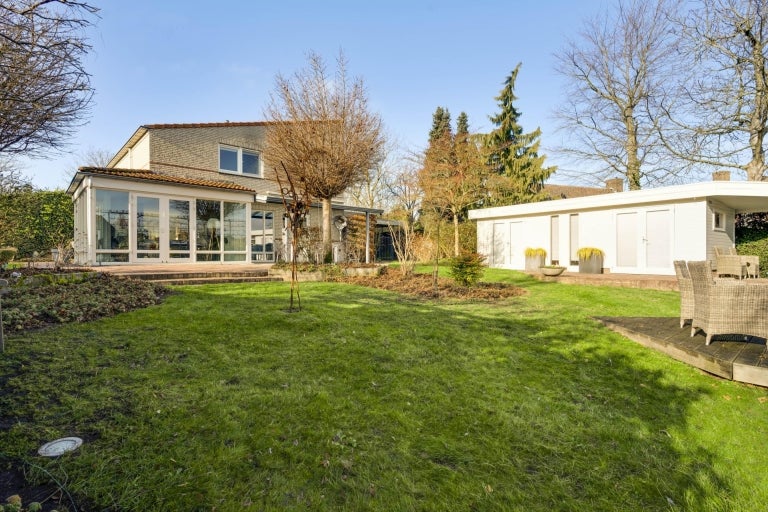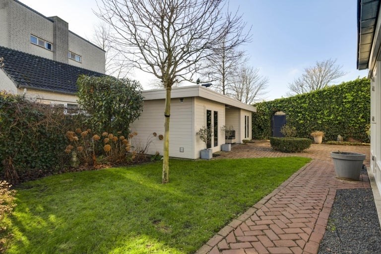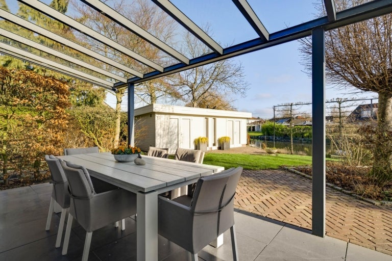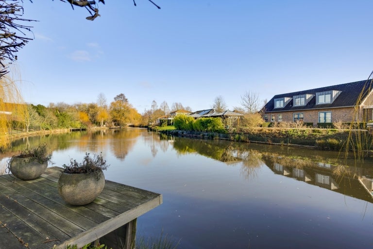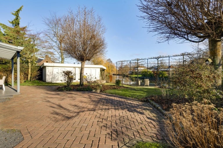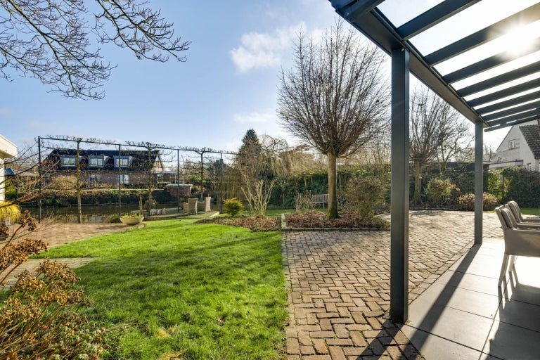 De strakke lijnen en grote raampartijen zorgen voor optimale lichtinval in de royale leefruimtes, die bestaan uit een eet- en zithoek. De moderne keuken (2020) is volledig uitgerust en een hoogtepunt van het huis. Op de begane grond zijn er praktische ruimtes zoals een bijkeuken en een berging. De villa heeft vier slaapkamers, een moderne badkamer, en een ruime bergzolder. Buiten is er een fraai aangelegde tuin aan het water met twee tuinhuizen. De uitstekende ligging biedt een combinatie van exclusief wonen en nabijheid van de stad.