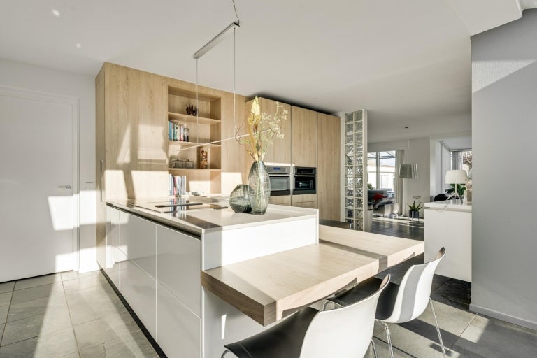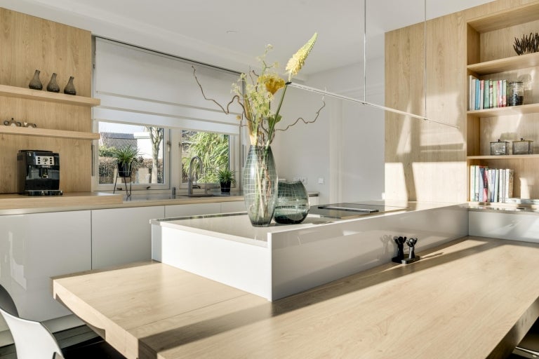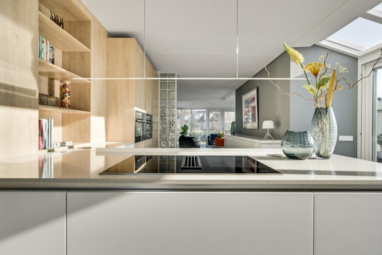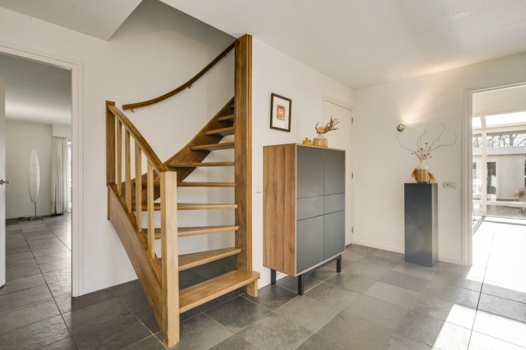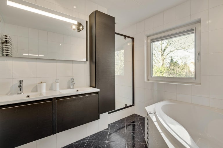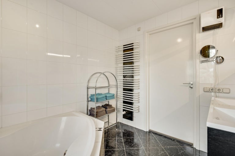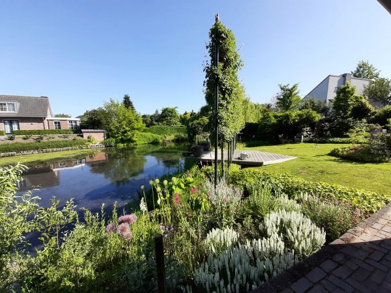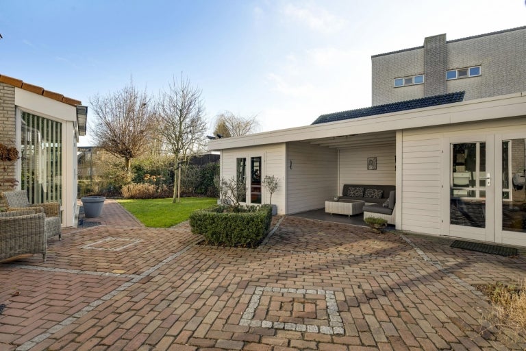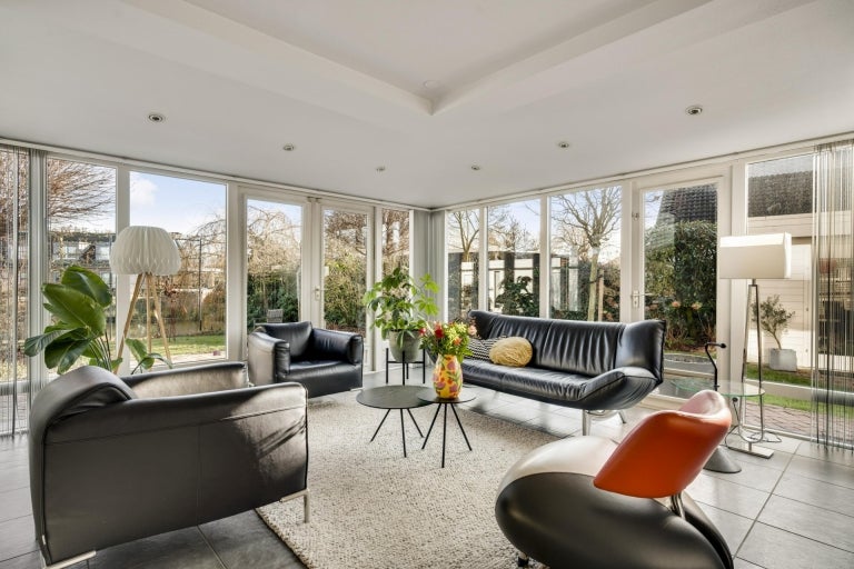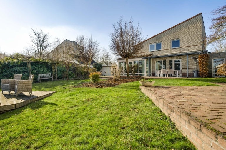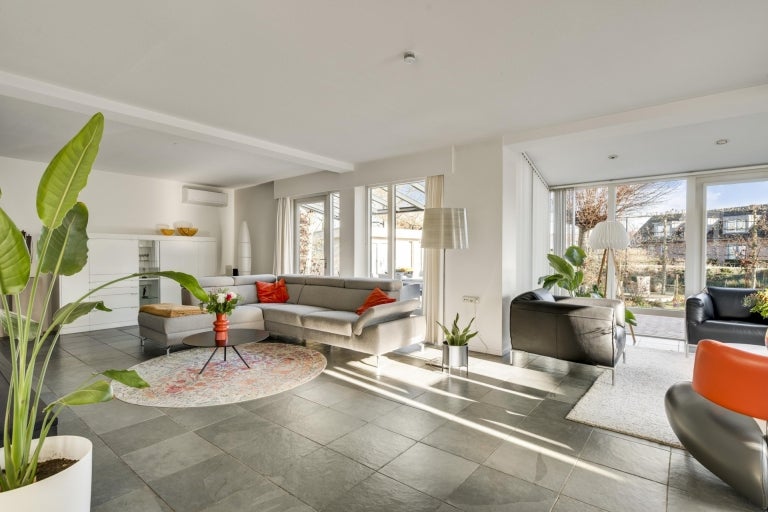 De strakke lijnen en grote raampartijen zorgen voor optimale lichtinval in de royale leefruimtes, die bestaan uit een eet- en zithoek. De moderne keuken (2020) is volledig uitgerust en een hoogtepunt van het huis. Op de begane grond zijn er praktische ruimtes zoals een bijkeuken en een berging. De villa heeft vier slaapkamers, een moderne badkamer, en een ruime bergzolder. Buiten is er een fraai aangelegde tuin aan het water met twee tuinhuizen. De uitstekende ligging biedt een combinatie van exclusief wonen en nabijheid van de stad.