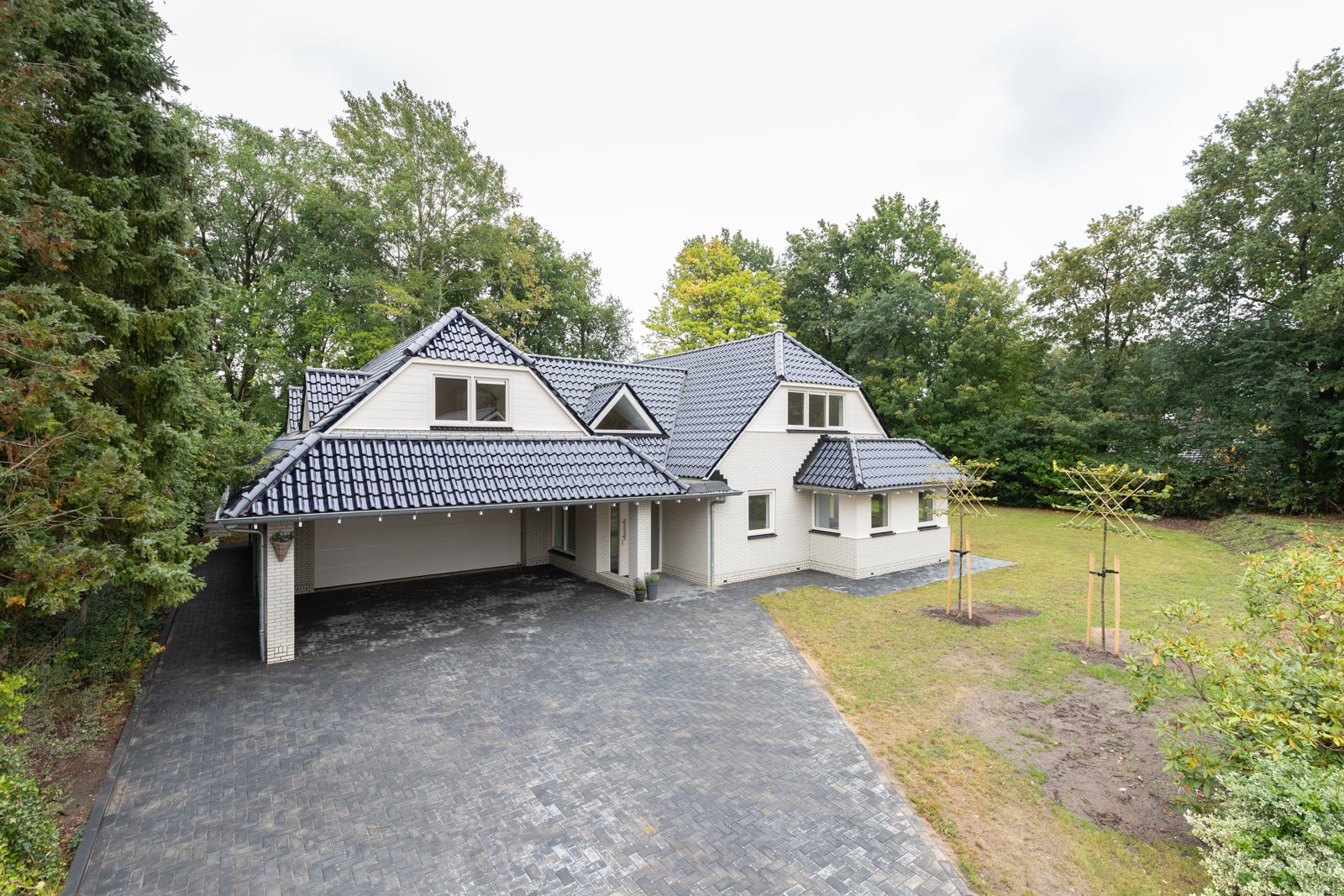 Deze riante vrijstaande villa bevindt zich op een mooie, beschutte locatie in Rolde en staat op een perceel van 1800 m². De woning, gebouwd in 2025, biedt een woonoppervlakte van circa 402 m² en is energiezuinig met een A+ label. Op de begane grond vindt u een ruime living van 70 m² met veel lichtinval en toegang tot de tuin, een luxe halfopen keuken van 18 m², en een slaapkamer met een luxe badkamer. De villa heeft twee badkamers en een ruime garage van 63 m² voor vier auto's. Op de eerste verdieping zijn vijf ruime slaapkamers en een sfeervolle badkamer. De mooie tuin rondom de villa en de rustige woonomgeving bieden zowel privacy als een nabijheid van voorzieningen. Dit maakt het een perfecte gezinswoning.
