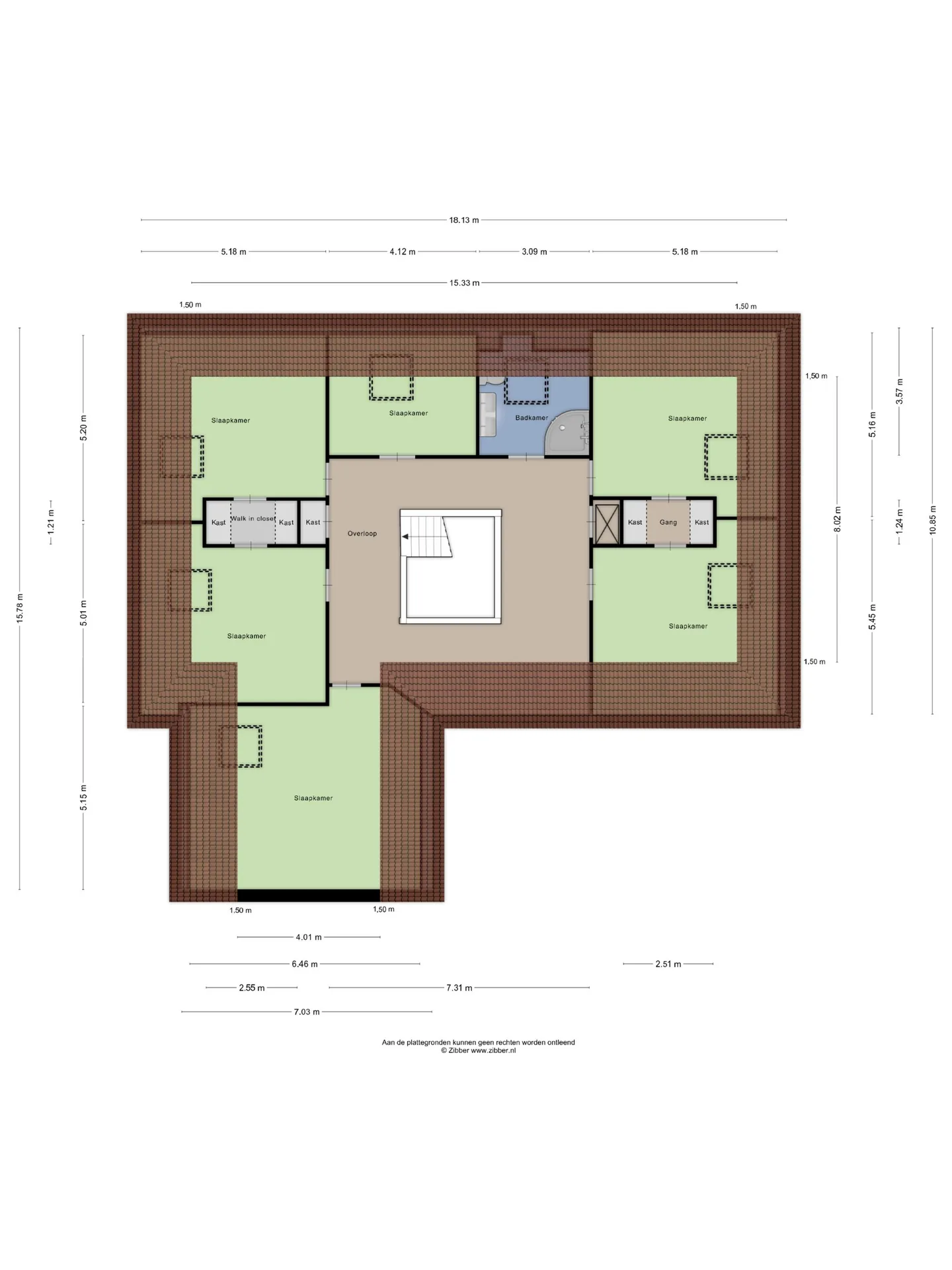 - De tussenwoning heeft een woonoppervlakte van 347 m² en beschikt over 10 kamers, waarvan 7 slaapkamers;