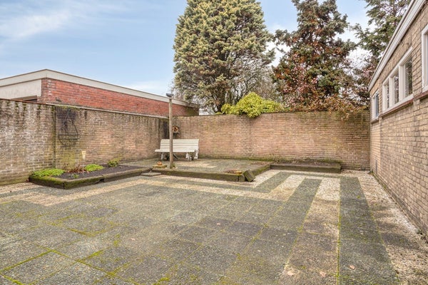 De achtertuin is volledig bestraat, onderhoudsvriendelijk en biedt een veilige plek om buiten te zitten of te spelen. De vrijstaande garage biedt extra ruimte voor parkeren, opslag of hobby’s, ook staat hier de Bosch CV-ketel uit 2010 opgesteld.