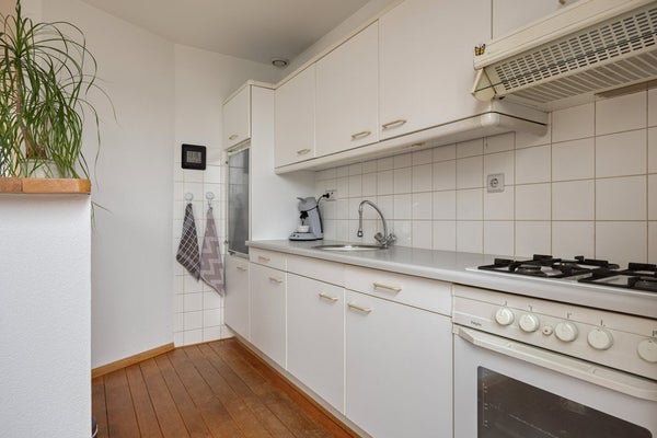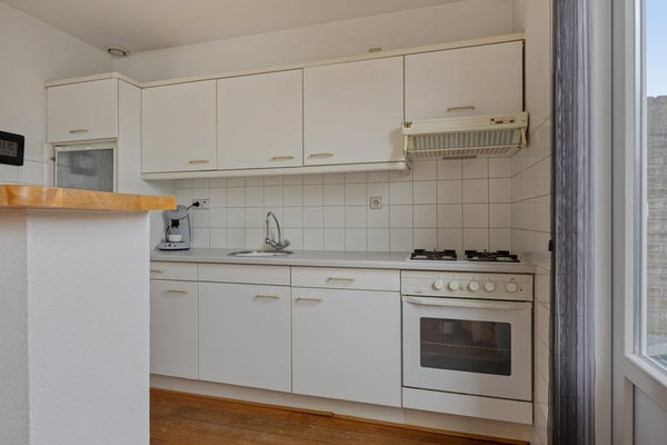 De keuken bevindt zich aan de achterzijde van de woning en is uitgevoerd in een verzorgde opstelling. Functioneel in gebruik en met mogelijkheden om deze naar eigen wens in te richten.