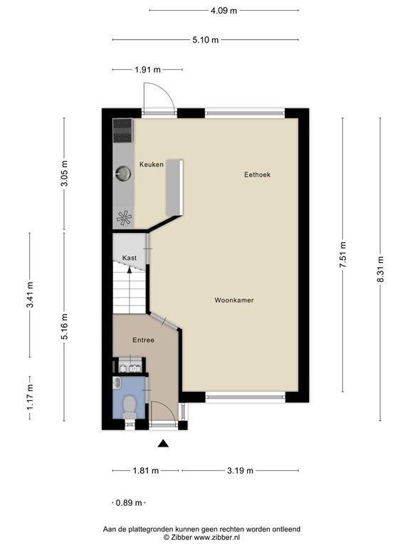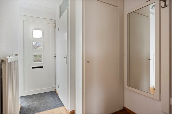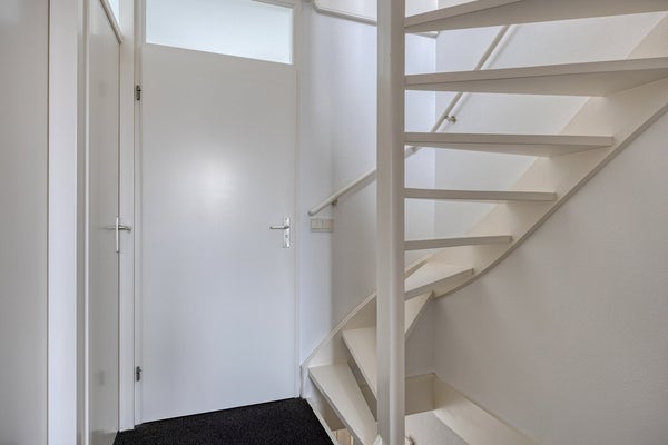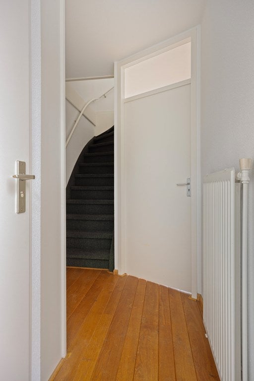 Entree/hal met toilet, meterkast en trapopgang. De lichte doorzonwoonkamer beschikt over raampartijen aan zowel de voor- als achterzijde, wat zorgt voor een aangename lichtinval en een ruimtelijk gevoel.