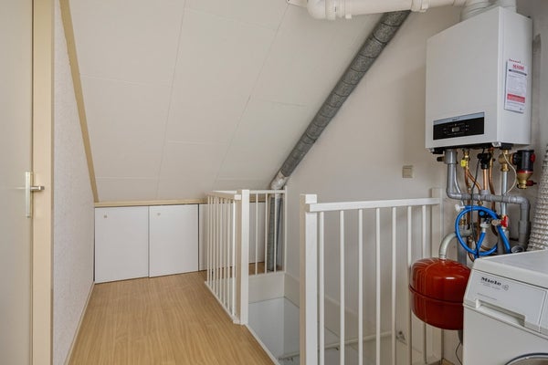 De zolderverdieping beschikt over een volwaardige vierde slaapkamer, ideaal als extra slaapkamer, werk- of hobbyruimte. Op de overloop bevinden zich de HR-combiketel (2024) en de aansluitingen voor wasapparatuur.