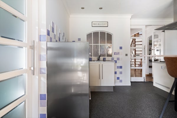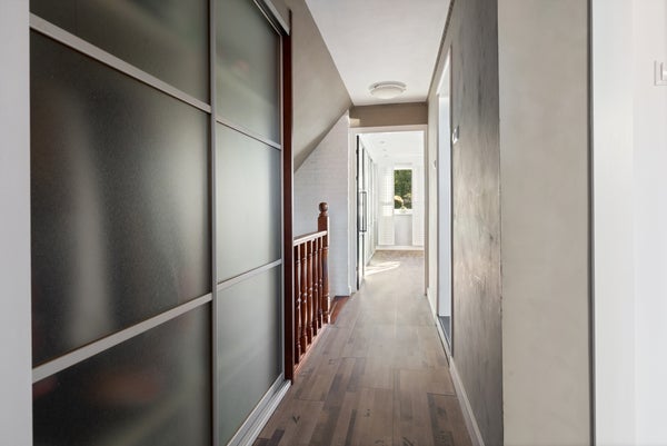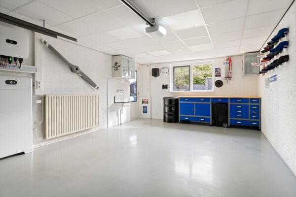 Bij binnenkomst komt u in de ruime entree, die toegang biedt tot de lichte woonkamer met massief eikenhouten vloer. De moderne woonkeuken is van alle gemakken voorzien en heeft toegang tot de tuin. De garage is verwarmd en geïsoleerd. Op de eerste verdieping bevinden zich de slaapkamers, en de moderne badkamer bevat een inloopdouche en dubbele wastafel.