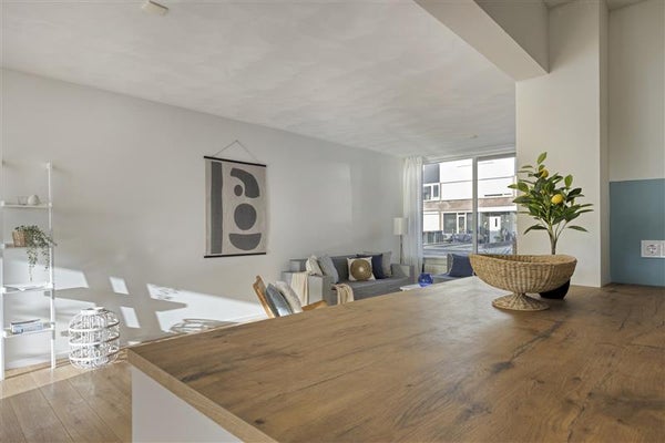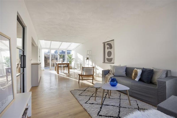 De woonkamer, ruim en licht, nodigt uit om samen tijd door te brengen, of om na een lange dag gewoon op de bank te ploffen. Dankzij het slimme ontwerp vloeien de ruimtes natuurlijk in elkaar over, waardoor het huis ruimtelijk maar toch knus aanvoelt.
