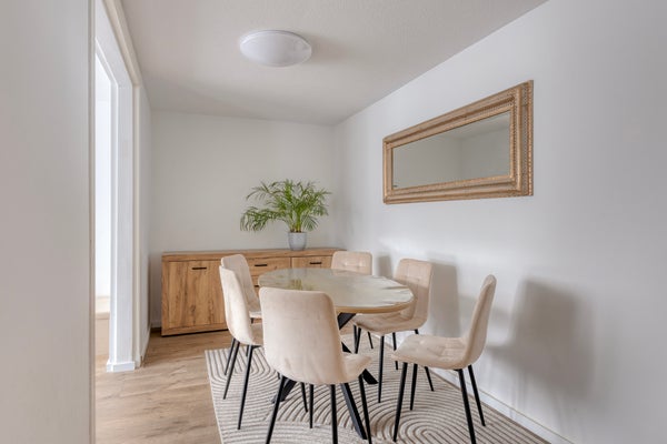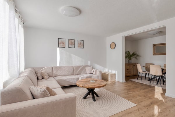 • De nette en lichte woonkamer bevindt zich aan de voorzijde van de woning;