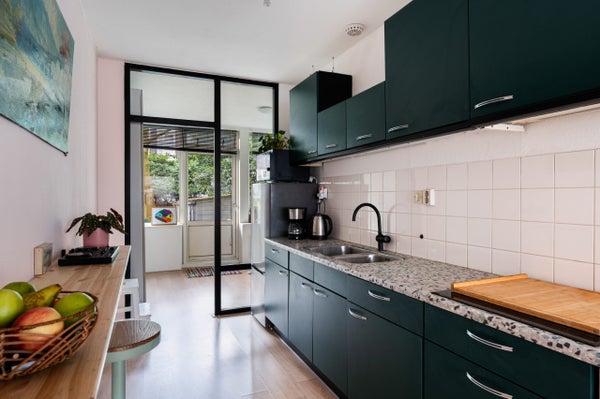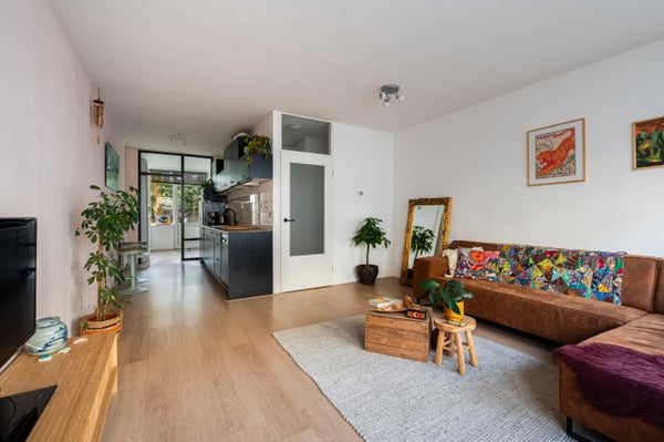 In de wijk Delfshaven ligt een mooie 2-kamer benedenwoning van 49 m² met een achtertuin. De woning biedt een ruime woonkamer met een halfopen keuken, een slaapkamer en een moderne badkamer. De achtertuin, gericht op het westen, beschikt over een gezellige zithoek en een berging. De woning ligt aan de westkant van het centrum van Rotterdam, op 100 meter van de Heemraadsingel en nabij tal van koffie-en eetgelegenheden. Het Centraal Station is binnen 10 minuten met de fiets bereikbaar. De hal met vaste kast leidt naar de verschillende vertrekken. De woonkamer is licht door de grote raampartijen, en de halfopen keuken is voorzien van een 4-pits kookplaat en een vaatwasser. De master bedroom biedt toegang tot de tuin en de moderne badkamer bevat een inloopdouche, wastafel en toilet. Energielabel E, deels dubbel glas, en een actieve V.v.E. met een maandelijkse bijdrage van € 157,90.