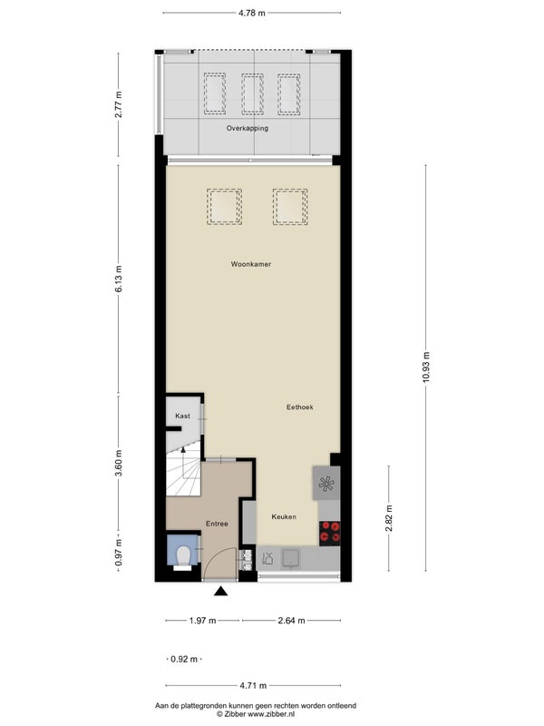 - Aanwezig (425 m², gelegen op het zuidwesten)
