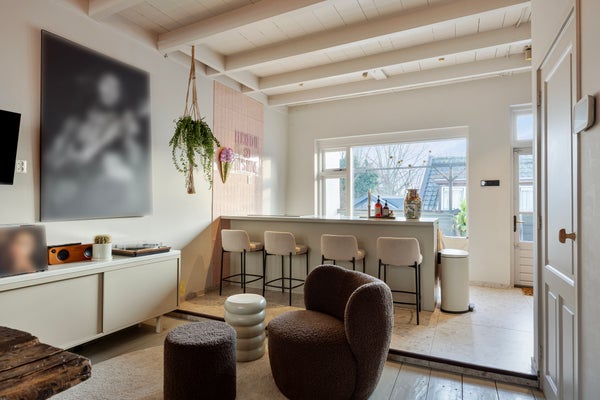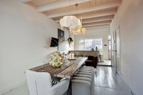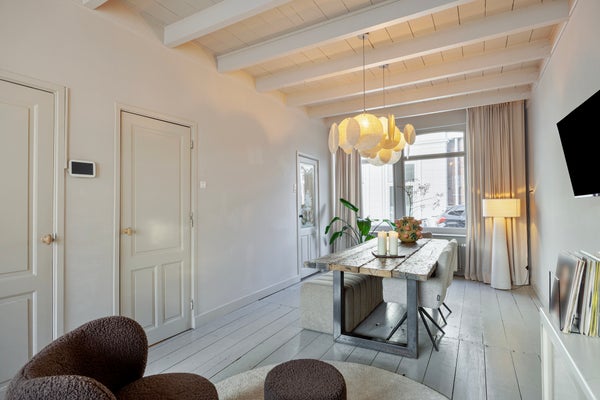 - De royale en lichte woonkamer is gelegen aan de voorzijde en biedt de mogelijkheid voor een gezellig zit- en eetgedeelte. Vanuit de eethoek heeft u toegang tot de trap naar de eerste verdieping en souterrain;