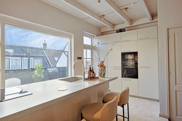- De luxe keuken welke vernieuwd is in 2024 is voorzien van schiereiland met gezellige bar met de volgende inbouwapparatuur; een inductiekookplaat met geïntegreerde afzuigkap, magnetron, oven, koelkast, vriezer, vaatwasser en Quoocker;