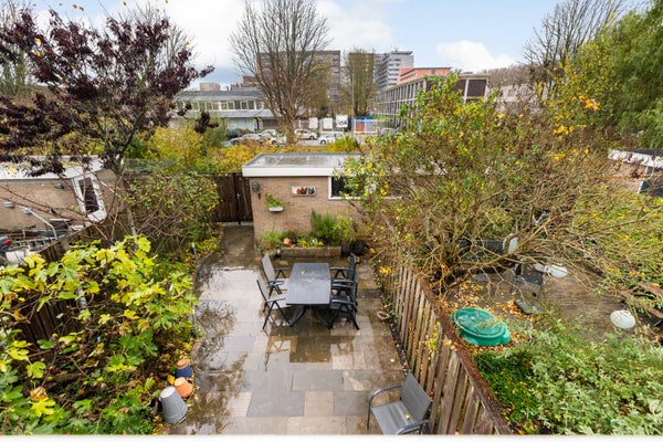 - De tussenwoning heeft een woonoppervlakte van 136 m² en beschikt over 6 kamers, waarvan 5 slaapkamers;