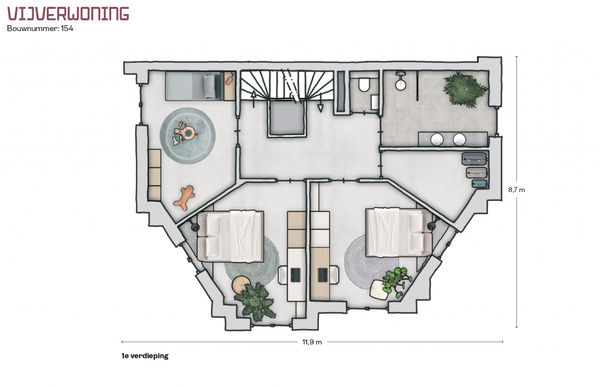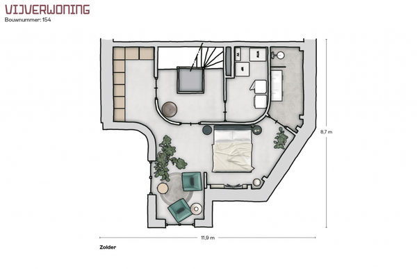 - De woning beschikt onder andere over de volgende voorzieningen: Dakterras, Bergruimte, Toilet.