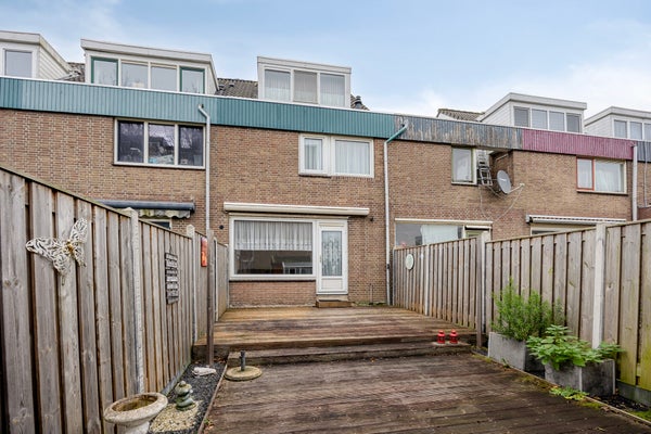 - De achtertuin is erg diep (ca. 14 x 5 mtr) en is gelegen op het Zuiden met houten blokhut en een kunststof berging.