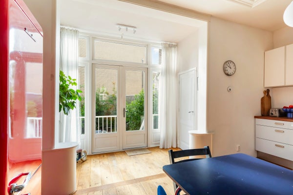 Deze ruime benedenwoning van 133 m2, gelegen in de wijk het Oude Noorden, beschikt over een riante achtertuin en een karakteristieke eigen entree. De woning omvat een lichte woonkamer van meer dan 12 meter lang en bijna 3 meter hoog, met originele details. De open keuken is voorzien van diverse inbouwapparatuur en staat in verbinding met de eetruimte, die toegang biedt tot een serre met uitzicht op de tuin. De master bedroom bevindt zich aan de achterzijde, met een inbouwkast en direct toegang tot de tuin. Er zijn nog twee slaapkamers en een badkamer met ligbad en inloopdouche. Het souterrain heeft vloerverwarming en er is praktische bergruimte. De fundering is in 2022 hersteld. Het appartement ligt strategisch nabij het centrum en openbare voorzieningen.