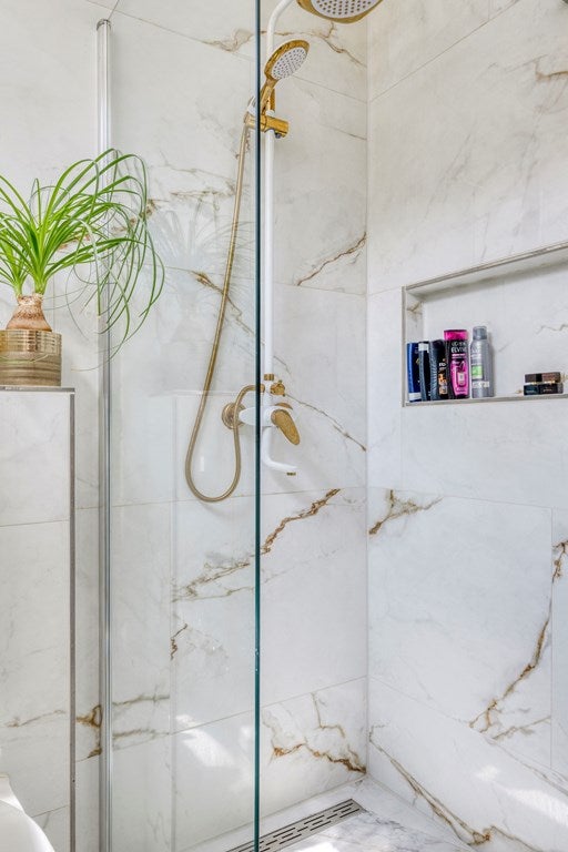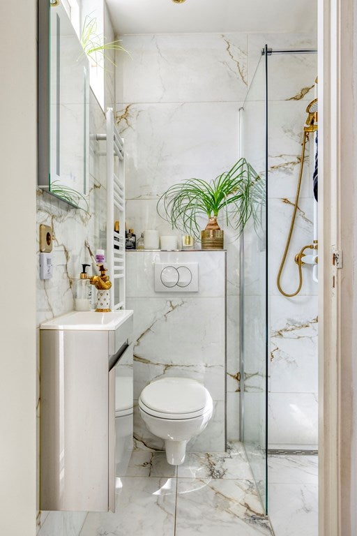 In het verlengde van de keuken bevinden zich een modern toilet én een extra badkamer met douche, ideaal voor gasten of voor gebruik op de begane grond.