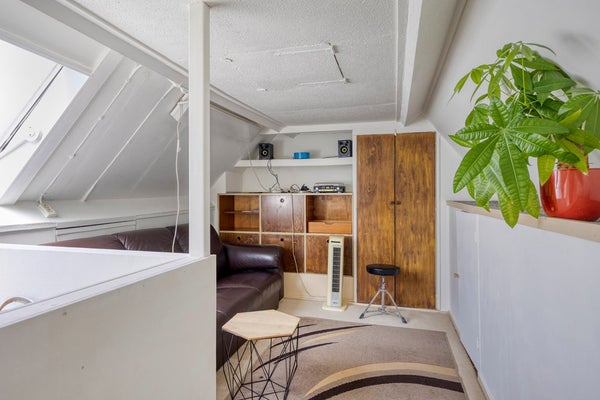 Ruime zolderetage met dakraam, vaste kast en veel bergruimte achter het knieschot. Deze verdieping is perfect te gebruiken als vierde slaapkamer, werkruimte of hobbykamer.