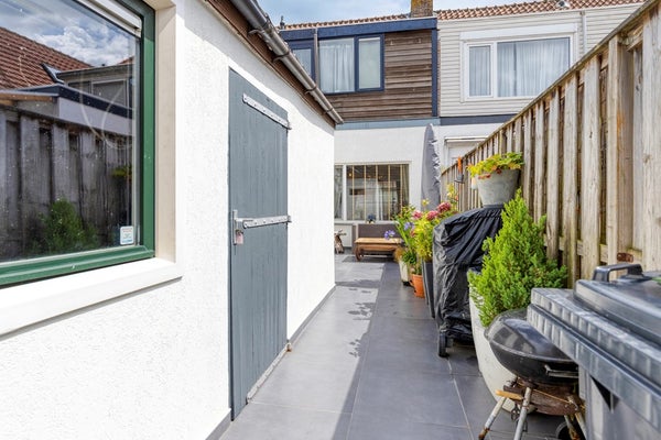 De achtertuin ligt op het westen en biedt een fijne combinatie van groen en bestrating. Achterin staat een grote stenen berging voorzien van elektra. De stenen berging ideaal voor opslag, klusruimte of fietsen. De tuin is ook bereikbaar via een achterom.
