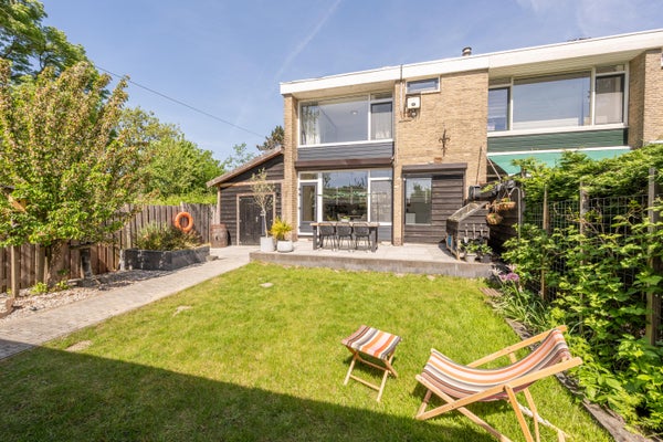 De achtertuin is een waar paradijs voor buitenliefhebbers! De ligging op het zonnige zuiden en de breedte van de tuin zorgen ervoor dat je hier de hele dag door een plekje in de zon kunt vinden. Er is een fijn terras, groot gazon en volwassen beplanting. De overkapping achterin de tuin is de kers op de taart en heeft voldoende ruimte voor een lounge set en de BBQ: een heerlijke plek om te ontspannen.