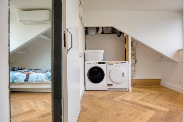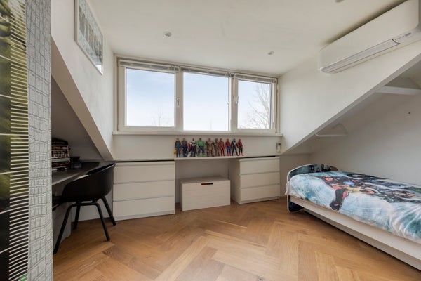 De zolderverdieping is voorzien van eikenparketvloer.